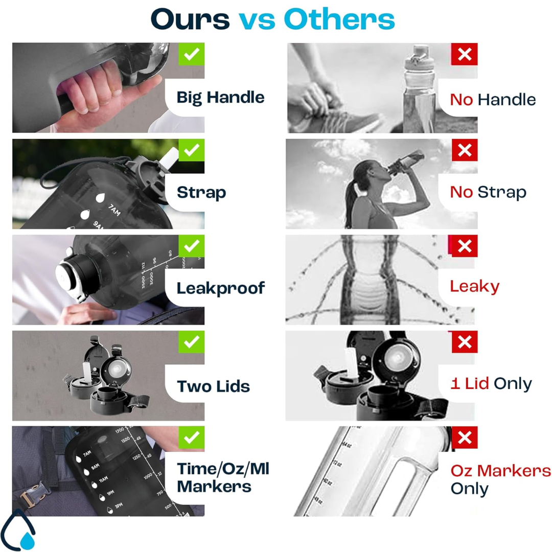 - 2L capaciteit: Blijf de hele dag gehydrateerd
