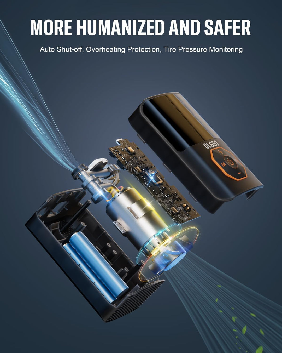 Maak je nooit meer zorgen over een lekke band onderweg. Deze draagbare luchtcompressor is compact, krachtig, en heeft een capaciteit van 18000mAh, zodat je in no-time weer op weg bent. Met een maximale druk van 160PSI en 4x snellere opblaassnelheid zorgt deze bandenpomp ervoor dat je banden altijd de juiste spanning hebben. Ideaal voor auto's, motoren, fietsen, en zelfs sportballen!