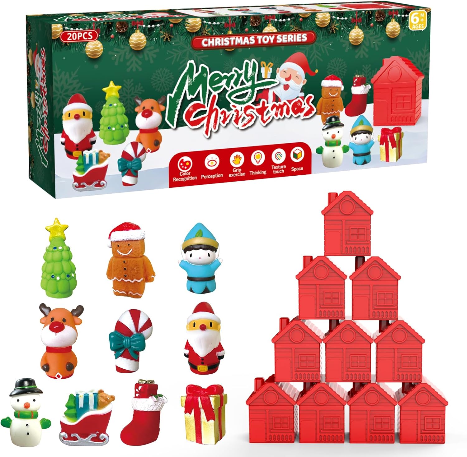 Maak je klaar voor uren speelplezier met de FestiveFingers Kerst Vingerpoppen Set! Deze interactieve set is perfect voor peuters om de magie van de feestdagen te ontdekken. Met 10 schattige vingerpoppen, waaronder de kerstman, een elf, een sneeuwman en een kerstboom, en 10 bijpassende stallen om te stapelen en sorteren. Stimuleer verhalen vertellen, fantasierijk spel en vroeg leren deze kerst. De kleurrijke, stevige stallen zijn gemakkelijk te stapelen en op te bergen, wat opruimen eenvoudig maakt.