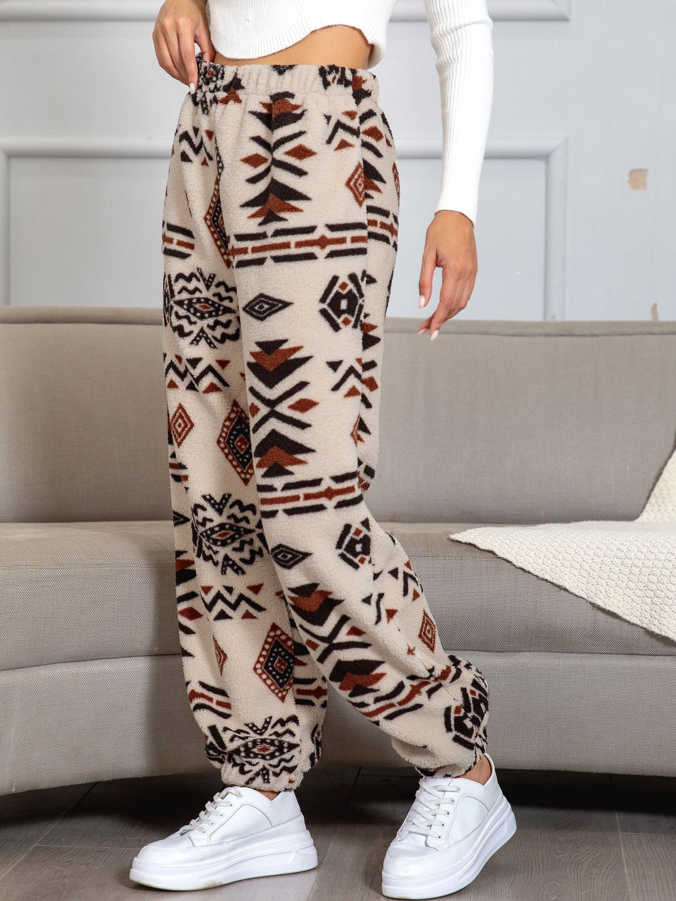 - Design: Azteekse print met elastische tailleband en getailleerde pijpen.