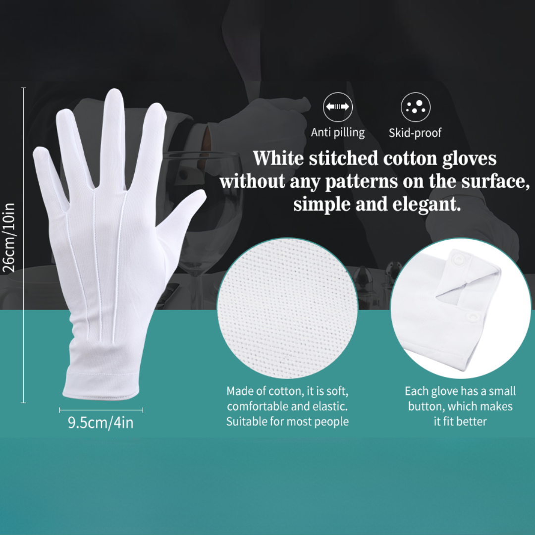 • Multifunctioneel Ontwerp: Perfect voor formele gelegenheden, kostuums, juwelenbehandeling of zachte handbescherming.
