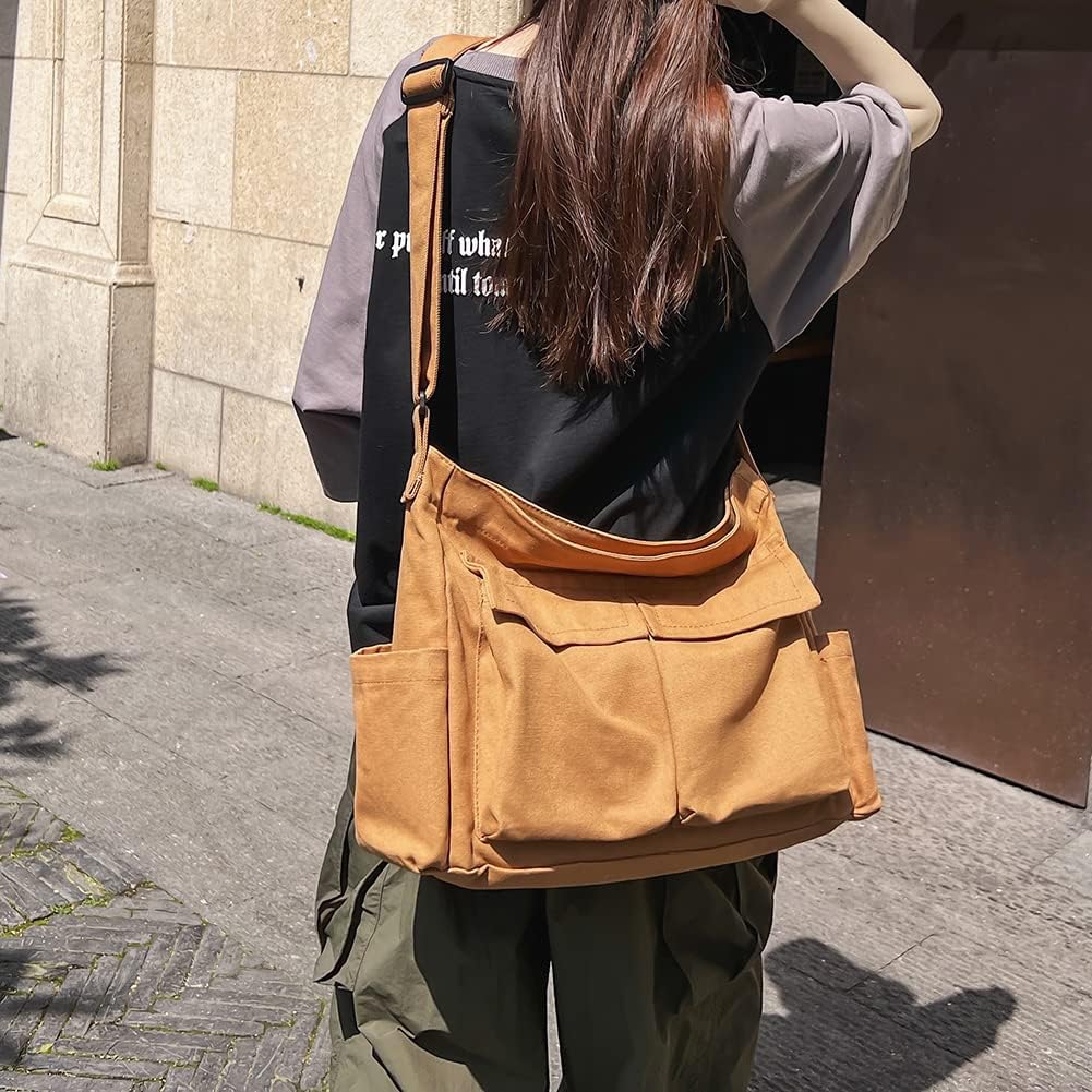 Deze canvas schoudertas combineert functionaliteit met een casual stijl. Gemaakt van duurzaam maar zacht canvas, is hij sterk genoeg voor boeken, laptops en dagelijkse benodigdheden, terwijl hij lichtgewicht en comfortabel blijft. De verstelbare schouderband maakt het mogelijk om hem over de schouder of crossbody te dragen, terwijl meerdere vakken alles georganiseerd houden. Met een klassiek uiterlijk dat goed te combineren is met elke outfit, is het de perfecte metgezel voor school, werk of casual uitjes.