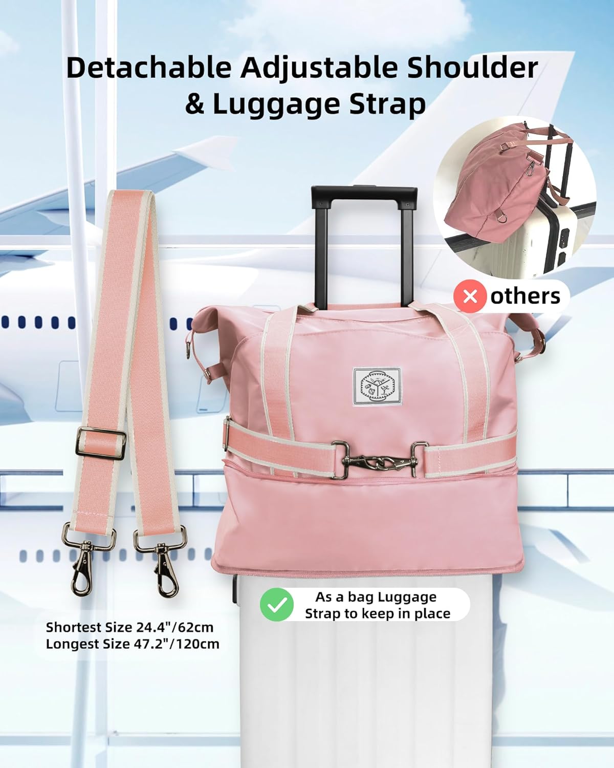Deze lichtgewicht duffel biedt een ruime 41 × 21 × (28+12) cm uitvouwbaar ontwerp, waardoor je voldoende ruimte hebt voor kleding, toiletartikelen en elektronica. Met meerdere compartimenten, waaronder een waterdichte zak voor natte items, houdt het je spullen georganiseerd en beschermd. De duurzame polyester stof is zowel waterdicht als scheurbestendig, terwijl de afneembare band en trolley sleeve het gemakkelijk maken om te dragen. Perfect als weekendtas, sporttas, ziekenhuistas of handbagage voor vluchten; het is gebouwd voor elke gelegenheid.