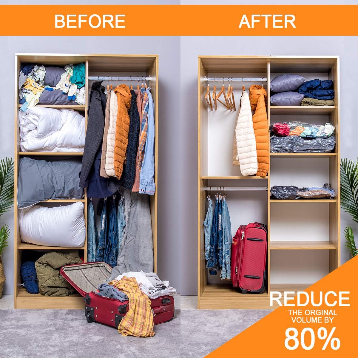 • Ruimtebesparend: Vermindert het opslagvolume met tot 80%