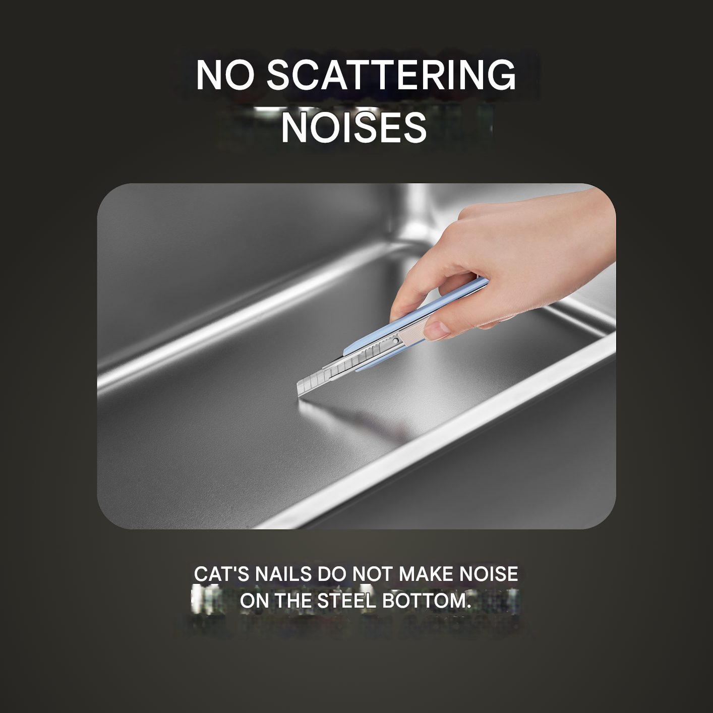 Onze SteelClean is dé oplossing voor wie klaar is met stinkende, versleten en lastig te reinigen plastic kattenbakken. Deze duurzame kattenbak is volledig gemaakt van roestvrijstaal en ontworpen voor een leven lang gebruik. Geen nare geurtjes meer, geen vastgekoekte restjes en geen frustratie bij het schoonmaken. Met zijn antibacteriële eigenschappen en ruime formaat is SteelClean niet alleen beter voor je kat, maar ook voor jou én het milieu.