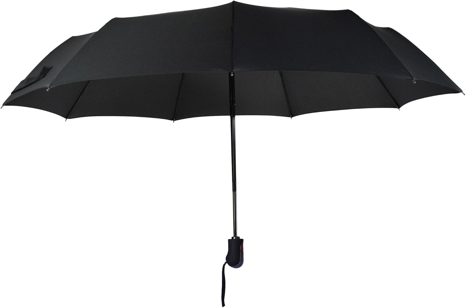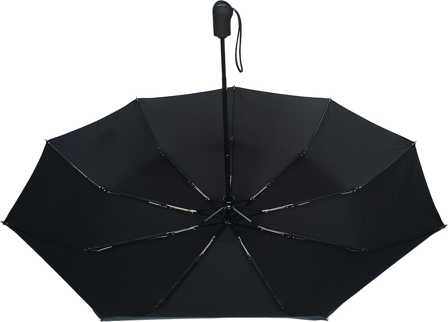 Deze paraplu is ontworpen voor mannen die betrouwbare bescherming nodig hebben zonder gedoe. Met een lengte van slechts 29 cm wanneer opgevouwen, past hij gemakkelijk in een rugzak, aktetas of dashboardkastje. Wanneer hij open is, biedt de brede 99 cm kap volledige dekking, versterkt door een 9-sprakennframe van staal en glasvezel voor bescherming tegen sterke winden. De automatische één-touch open/sluitknop maakt het snel en gemakkelijk in gebruik, terwijl de antislip rubberen grip zorgt voor comfort en controle in natte omstandigheden.