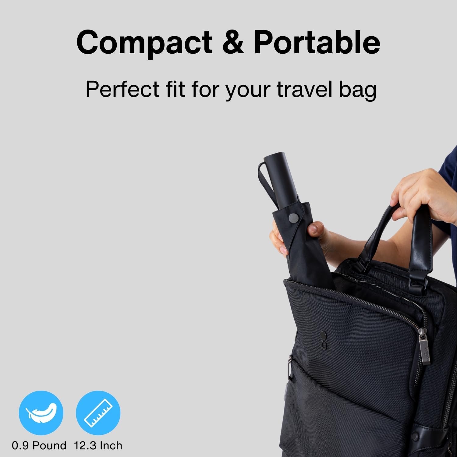 Deze automatische opvouwbare paraplu heeft 8 versterkte aluminiumlegering en glasvezel ribben, ontworpen om sterke wind en zware regenbuien te weerstaan. De 115 cm kap biedt brede dekking voor twee, terwijl de waterafstotende stof zorgt voor snelle droging na gebruik. Met één druk op de knop open en dicht, is hij compact genoeg voor woon-werkverkeer, reizen of dagelijks gebruik, maar sterk genoeg om zware weersomstandigheden aan te kunnen. Het ergonomische handvat biedt een comfortabele grip voor langdurig gebruik.