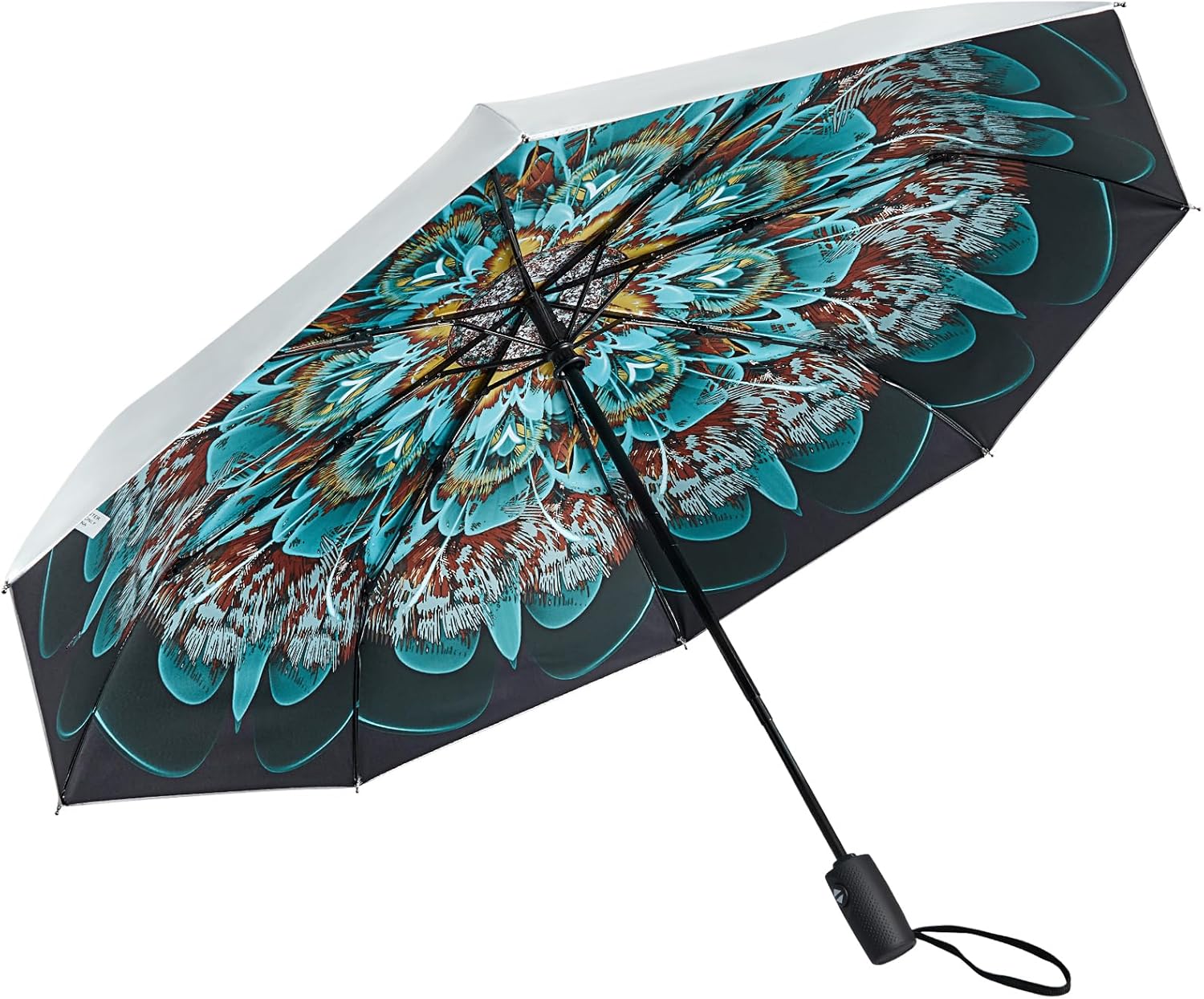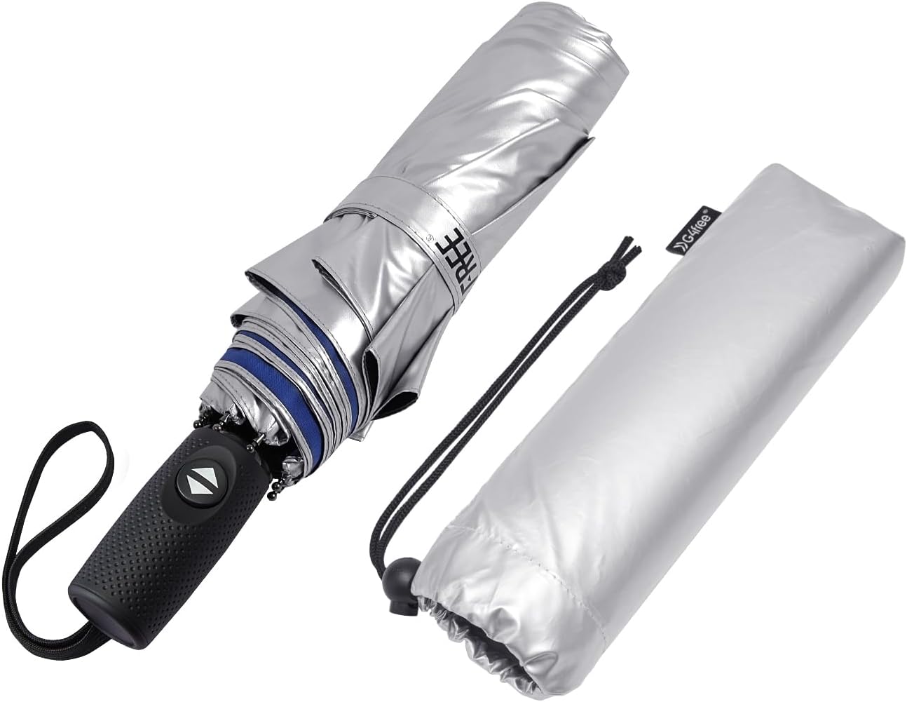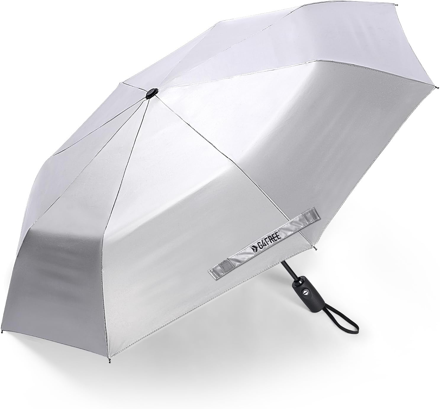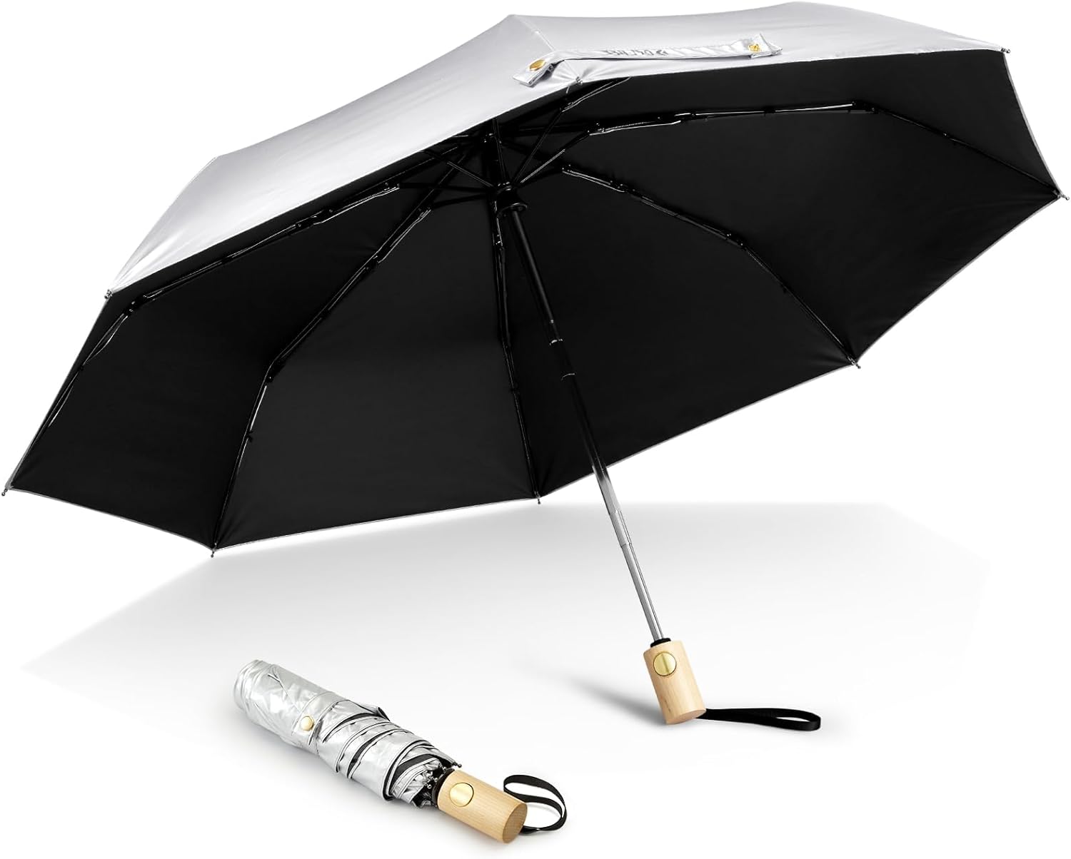 Deze paraplu combineert zon- en regenbescherming in één. Het zilver-gecoate doek blokkeert 99,9% van de UVA- en UVB-stralen met UPF 50+ bescherming terwijl het jou koel houdt onder de zon. Gemaakt met een lichtgewicht fiberglas frame, weerstaat het sterke winden en draait terug zonder te breken. Compact met slechts 28 cm wanneer ingeklapt, past het eenvoudig in tassen of bagage. Met zijn brede doek en een-touch automatische opening/sluiting is het een must-have voor reizen, woon-werkverkeer en dagelijks gebruik.
