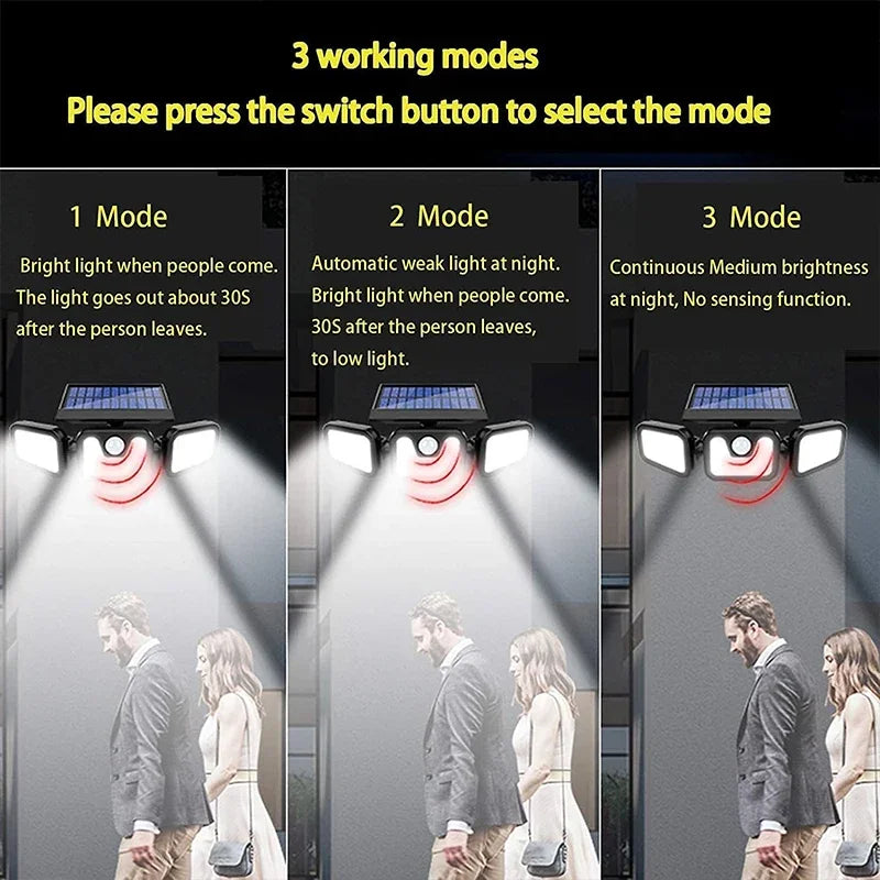 - Inteligentna kontrola jasności: Światło pozostaje włączone przez całą noc i staje się jaśniejsze po wykryciu ruchu.